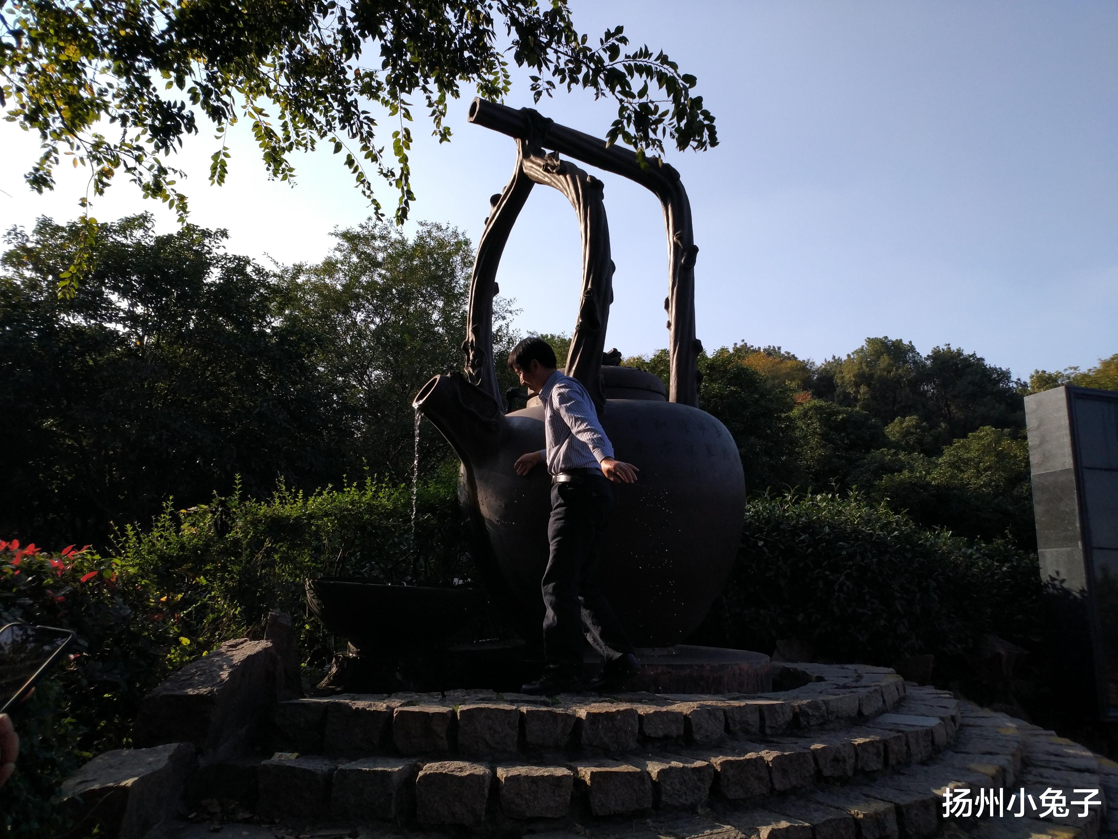 过了逍遥桥,一个巨大的东坡提梁壶出现在眼帘。这是胡里山岛的“第一壶”。这把壶,获得过上海大世界吉尼斯纪录总部认证,被认定为目前为止世界上最大的紫砂提梁壶。第一壶造型古朴典雅。壶嘴里汩汩流淌着天目湖清澈的水,婉约诗情。