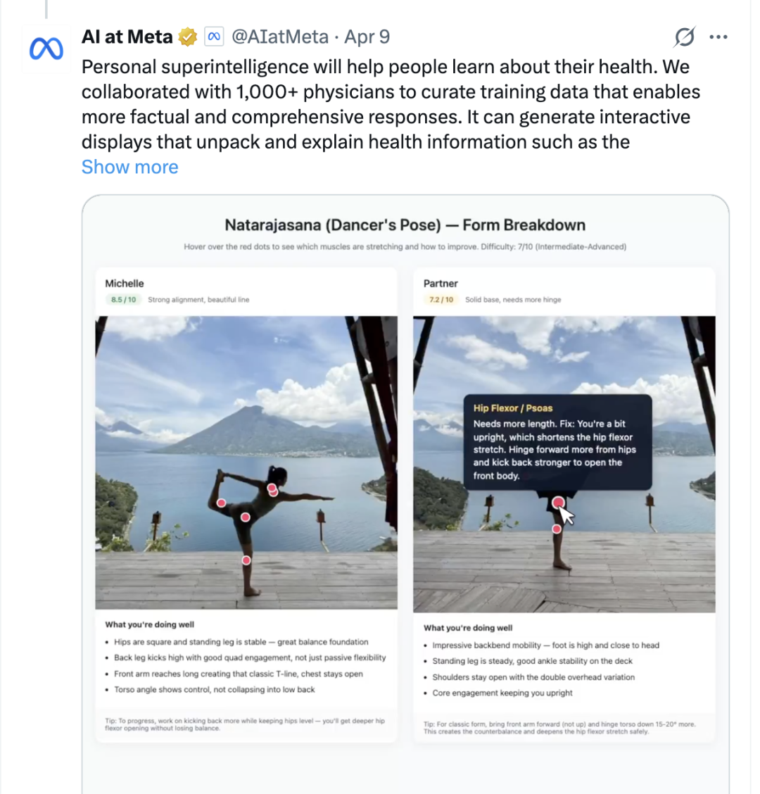 这句话的潜台词是:Meta不再满足于做一个对话机器人,而是要造一个真正能帮你看病、做饭、规划生活的“全能外挂”。而且,他们正在用一套更聪明、更省钱的方式去实现它。