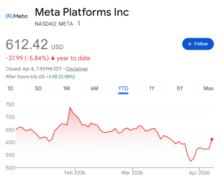 周三当天,Meta的股价像坐了火箭,盘中一度涨超10%,最终以超过6%的涨幅收盘,总市值稳稳站在1.55万亿美元的高位。