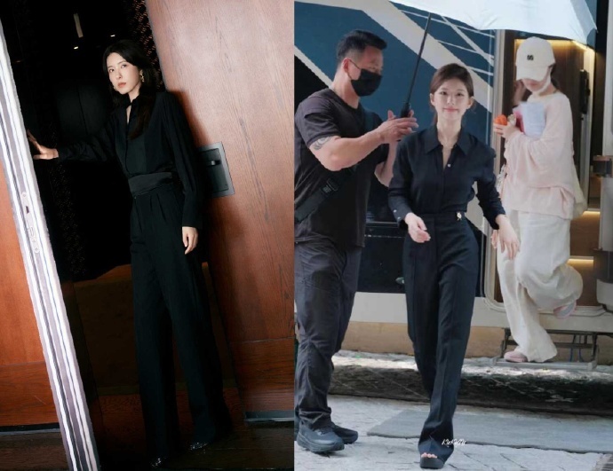 在最新的活动中,曾黎身穿一套all black的女霸总穿搭,尽显干练与霸气。而赵露思在《许我耀眼》的最新路透中,也穿着类似的全黑造型,两人的风格相似度极高。网友们戏称这是“母女装”,纷纷表示两人都十分美丽,气质各有千秋。