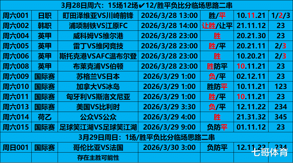 祝大家好运!!还是那句话,足球是圆的,什么结果都有可能。我做不到大多数人都能满意,大家自由组合,公开数据不一定是最终结果。保持好心态,才能得到好的结果。