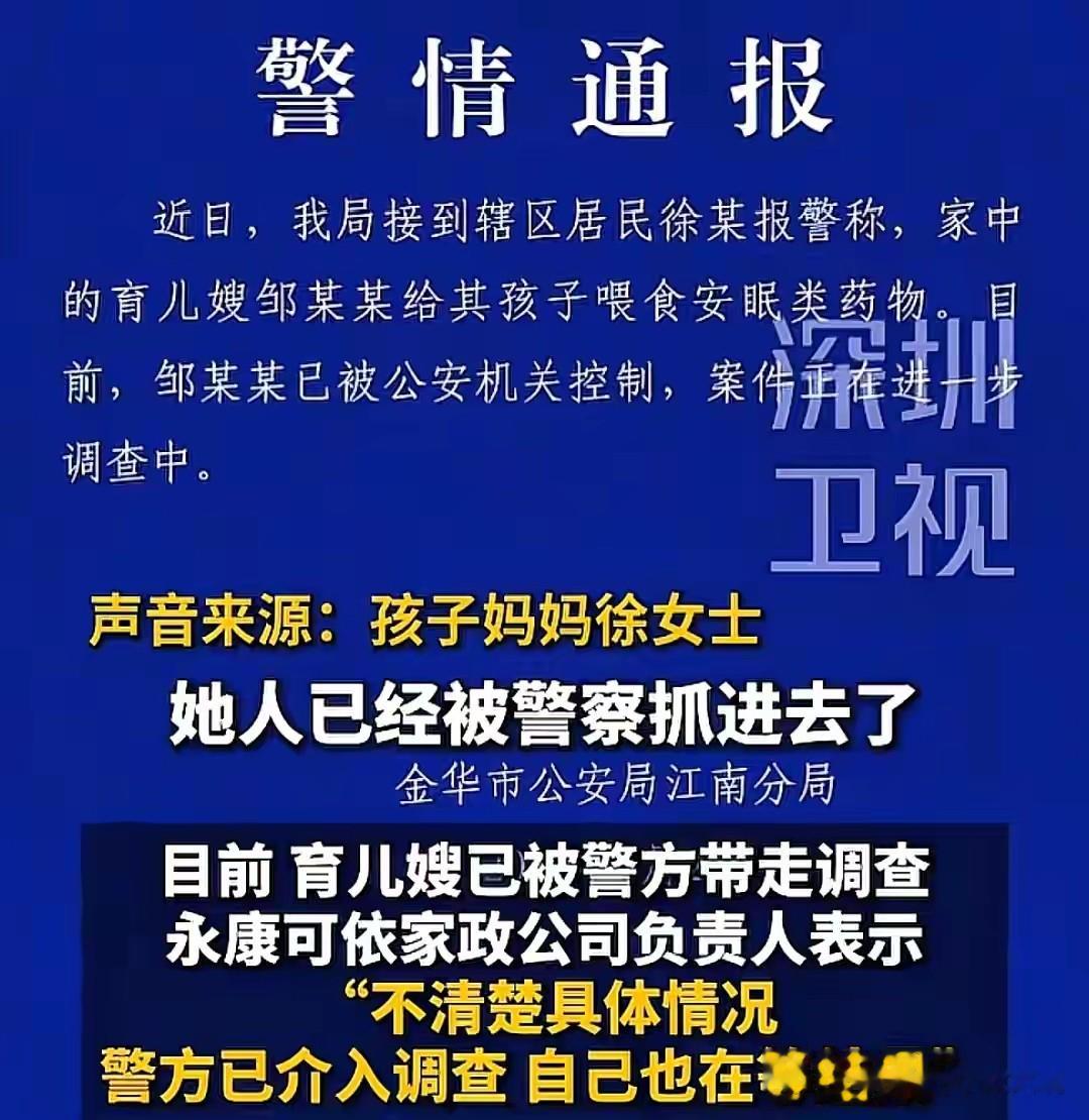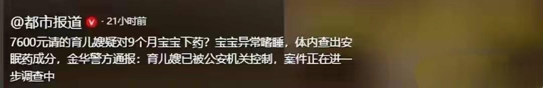 都市报道:7600元请的育儿嫂疑对9个月宝宝下药?宝宝异常嗜睡,体内查出安眠药成分,金华警方通报:育儿嫂已被公安机关控制,案件正在进一步调查中