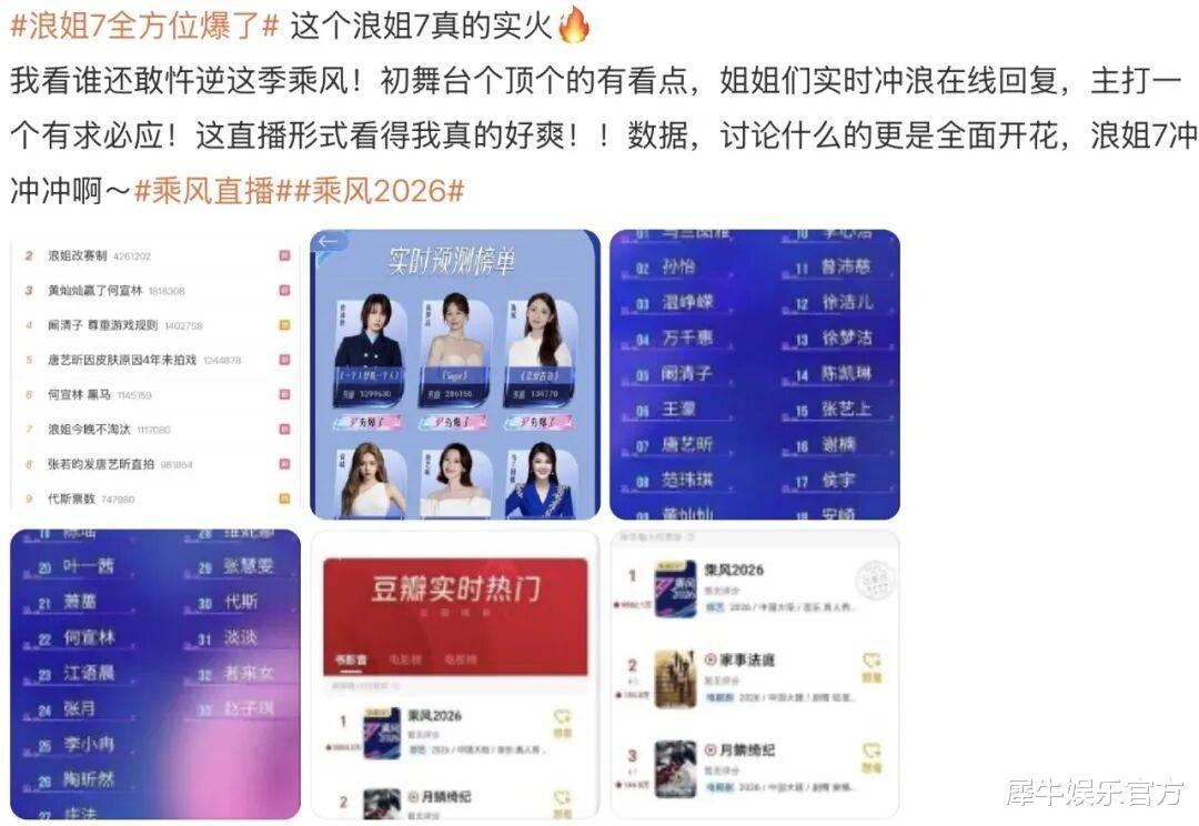 看完以上热搜,犀牛君请各位想象一下,若不是因为《乘风2026》(下称《浪姐7》)您还记得娱乐圈里有阚清子、江语晨或李心洁这号人物吗?