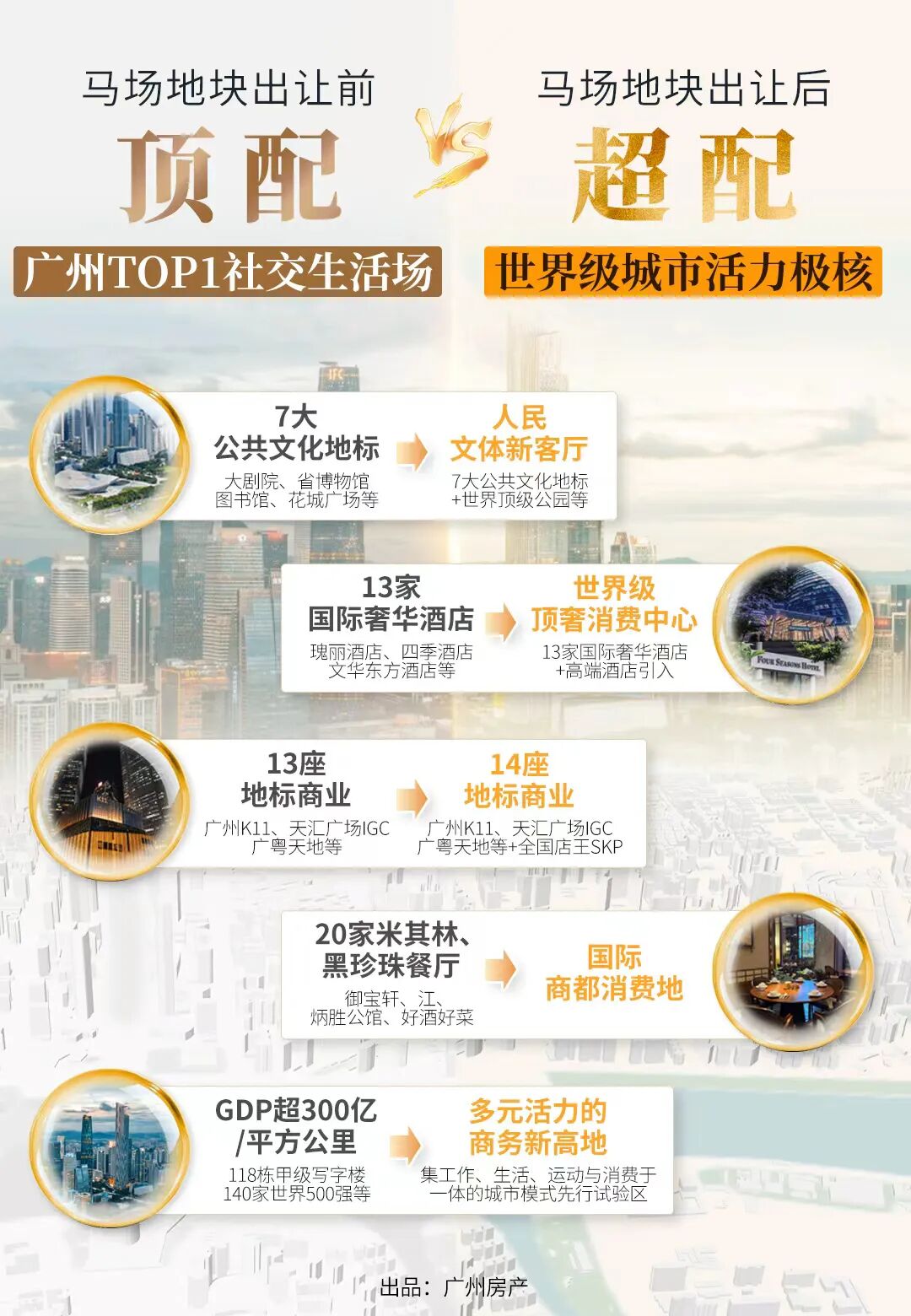 广州东塔、西塔两大城市地标,嘉裕公馆、尚东柏悦府、珠江颐德公馆、凯旋新世界枫丹丽舍……未来随着马场地块亮相,光环势必再加持。