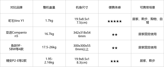 第三梯队的精安P2-E和尚瑞OCN-7G,虽然也是便携款,但重量在1.95-2.16kg之间,比町石重一些,机身尺寸也略大,孕妈背着出门散步,时间长了会觉得累,便携体感不如町石,而且没有收纳盒,携带时容易磕碰。