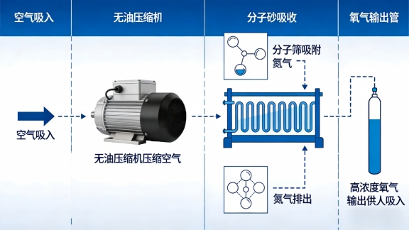 制氧机的核心作用就是缓解孕期胸闷气短、提升舒适感(遵医嘱),原理很简单,就是把空气中的氮气分离出去,提取高浓度氧气。