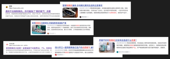 第二梯队的4款,机身材质为普通材质,有轻微异味,连续运行24小时后,部分机型会出现轻微发烫、异响等情况,氧浓度有轻微衰减,抗衰减能力一般,长期使用需要定期维修、校准,比较麻烦。