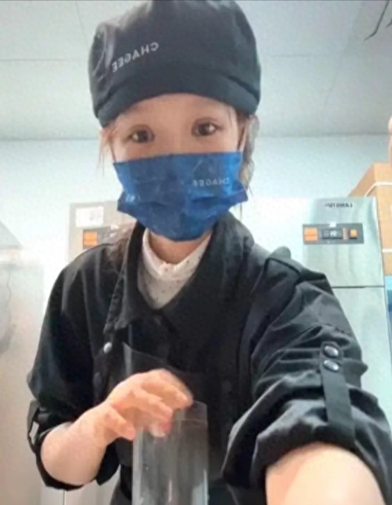 1月5号晚上九点半,福建一家霸王茶姬门店快要关门的时候,刘某某拿起手机,对着操作台开始拍摄,她用手把冰块弄碎,冰渣到处飞,掉在台面上的又一颗一颗捡回杯子里