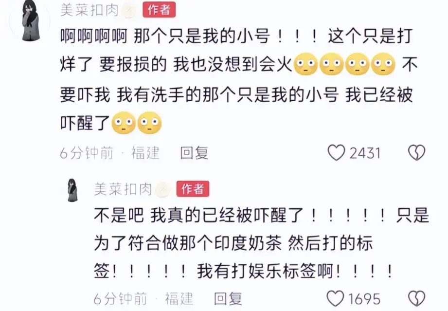 这时候,刘某某也慌了她在自己账号上解释说, 只是打烊后模仿印度奶茶玩玩梗,还打了娱乐标签,没想到会这么火,
