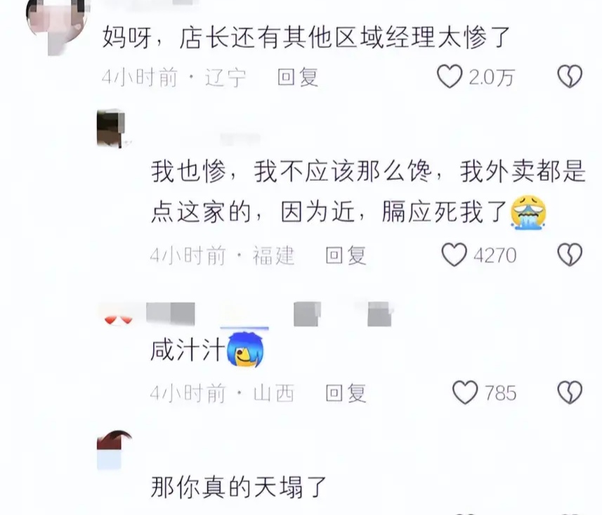 评论区里最常见的说法就是,就算用的是报损物料,就算没卖出去, 穿着工服在工作台上干这事本身就是对食品安全的不尊重。有人说,爱喝霸王茶姬的我天塌了,有人说,以后再也不敢点外卖奶茶,纷纷怀疑行业的卫生标准,