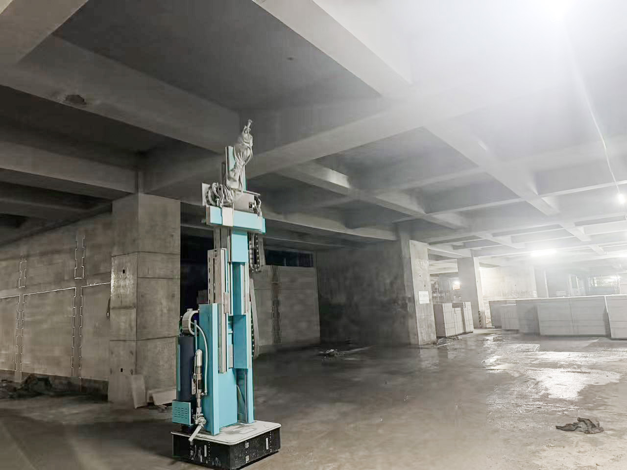 蔚建高墙喷涂机器人(PNP-6000iC)专为地下室、核心筒外围等开阔大空间喷涂设计,以高效作业、高覆盖率、全流程自动化等优势,成为大空间高墙喷涂的首选方案。蔚建高墙喷涂机器人,墙面喷涂高度可达5.9米,天花喷涂可达6.4米,完美适配项目4.6-5.1米的施工高度与大空间作业需求,无需搭架即可覆盖高空区域,即可轻松覆盖项目高空作业区域。支持超1000㎡的大空间作业,无需设置围挡参照物,即开即用,即便在上海东站复杂的建筑结构中,也能灵活穿梭,确保喷涂连贯高效。