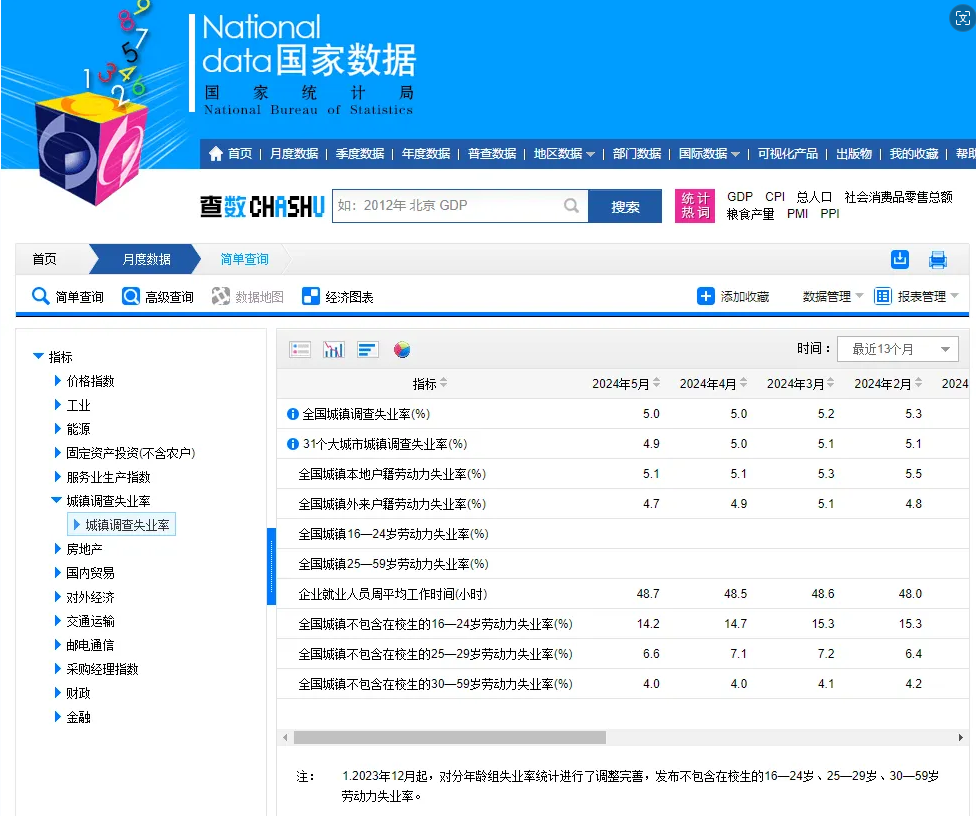 6月19日,国家统计局发布了5月份全国城镇劳动力市场的失业数据。数据显示,16至24岁非在校生的失业率高达14.2%,而25至29岁非在校生的失业率为6.6%。与此同时,30至59岁非在校生的失业率则相对较低,为4.0%。这些数据为我们提供了对当前就业市场的深入了解,并为政策制定者提供了宝贵的参考信息。