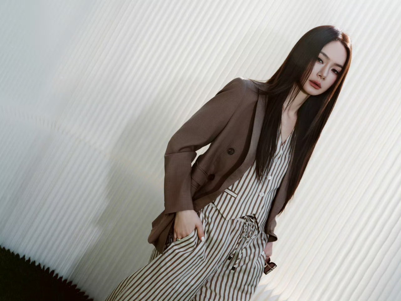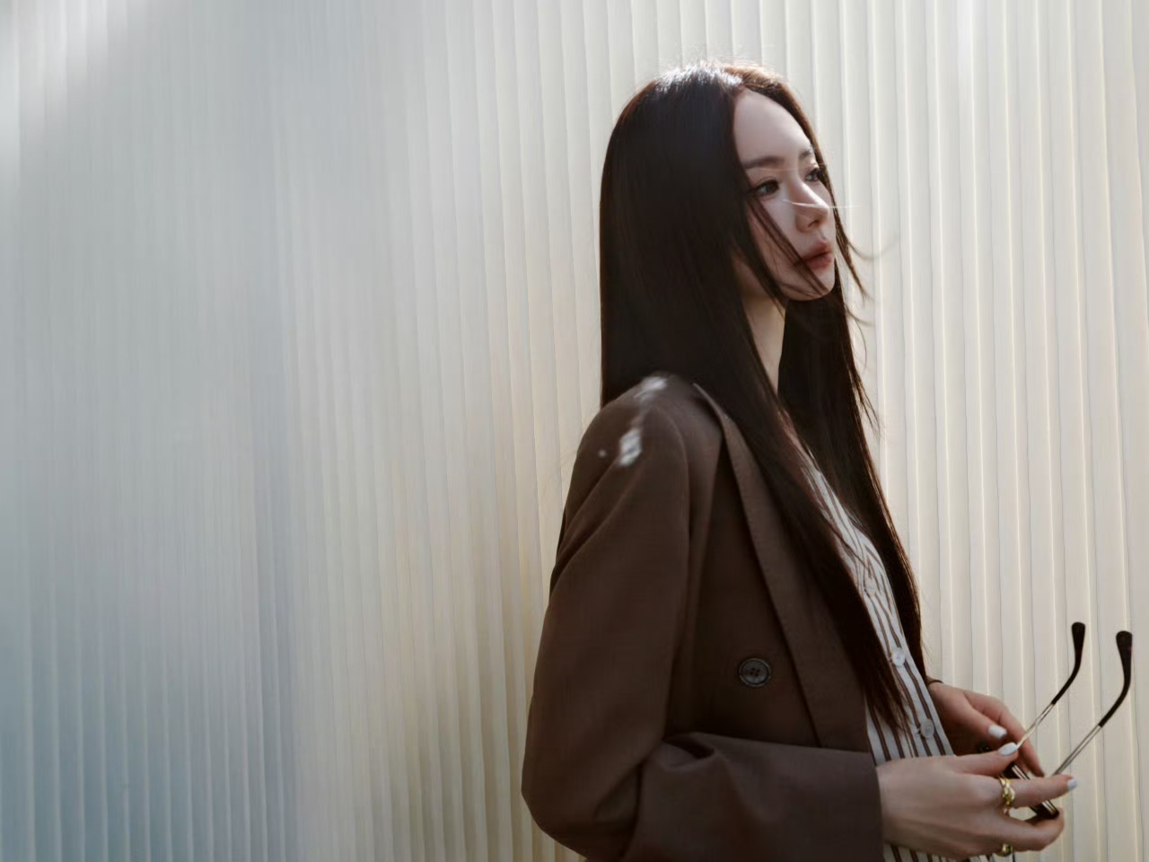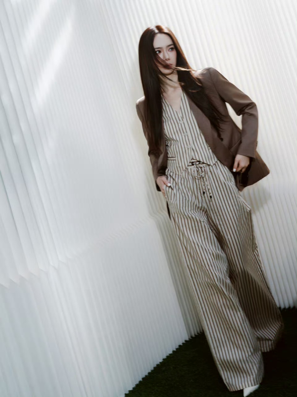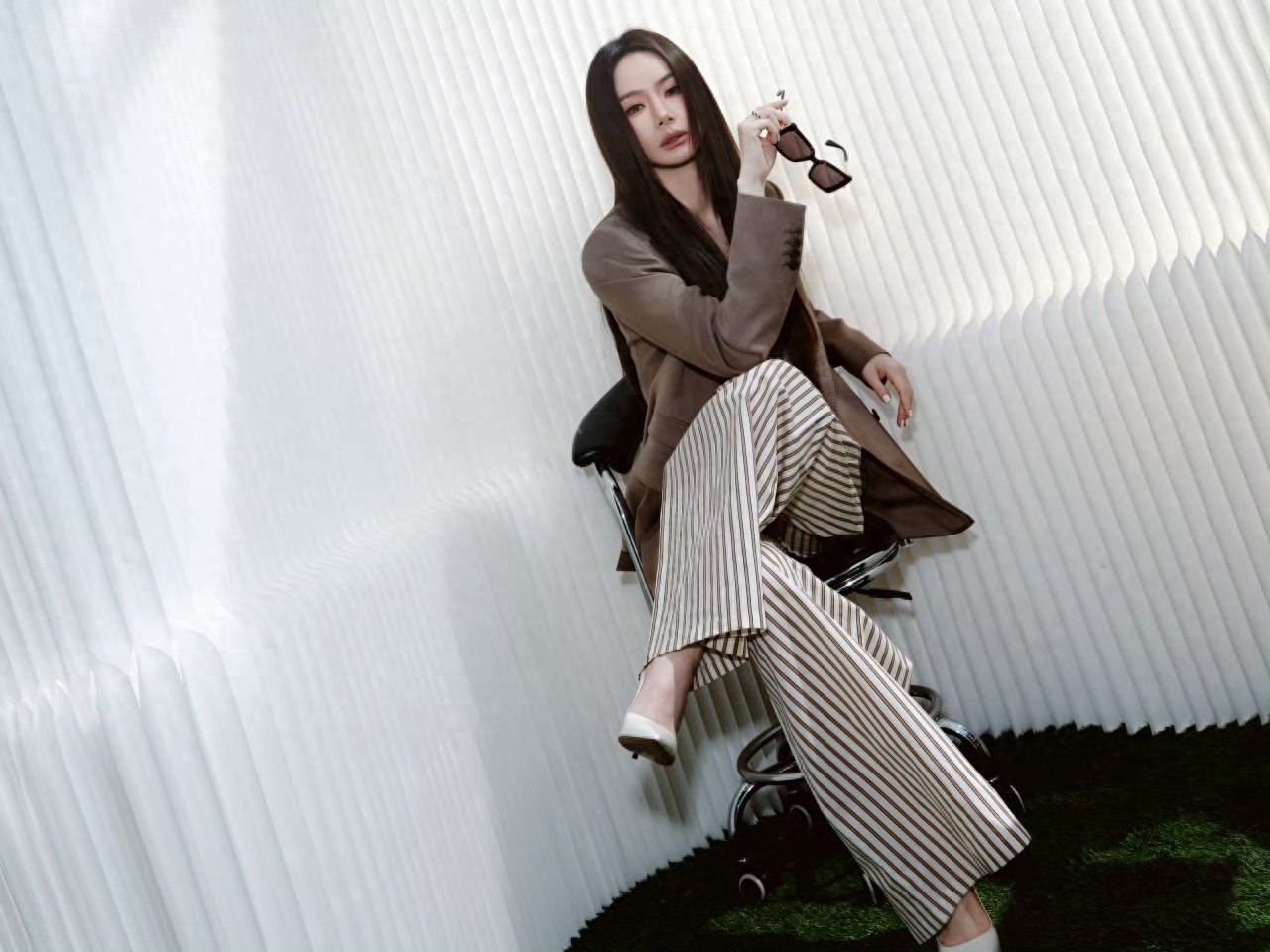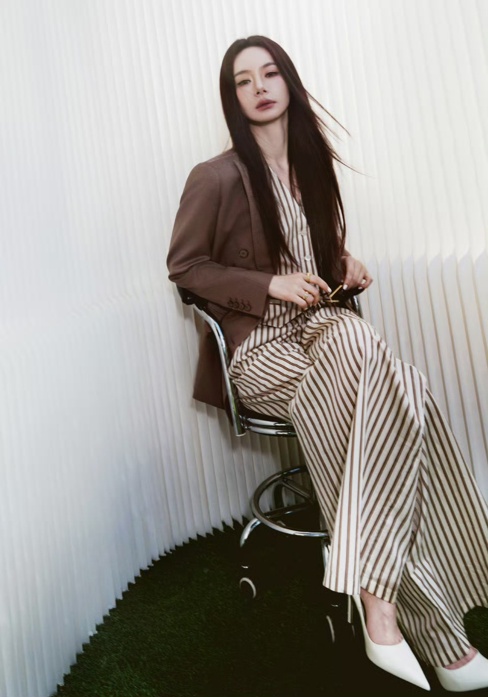戚薇脚踩白色高跟,美成妈咪级别了