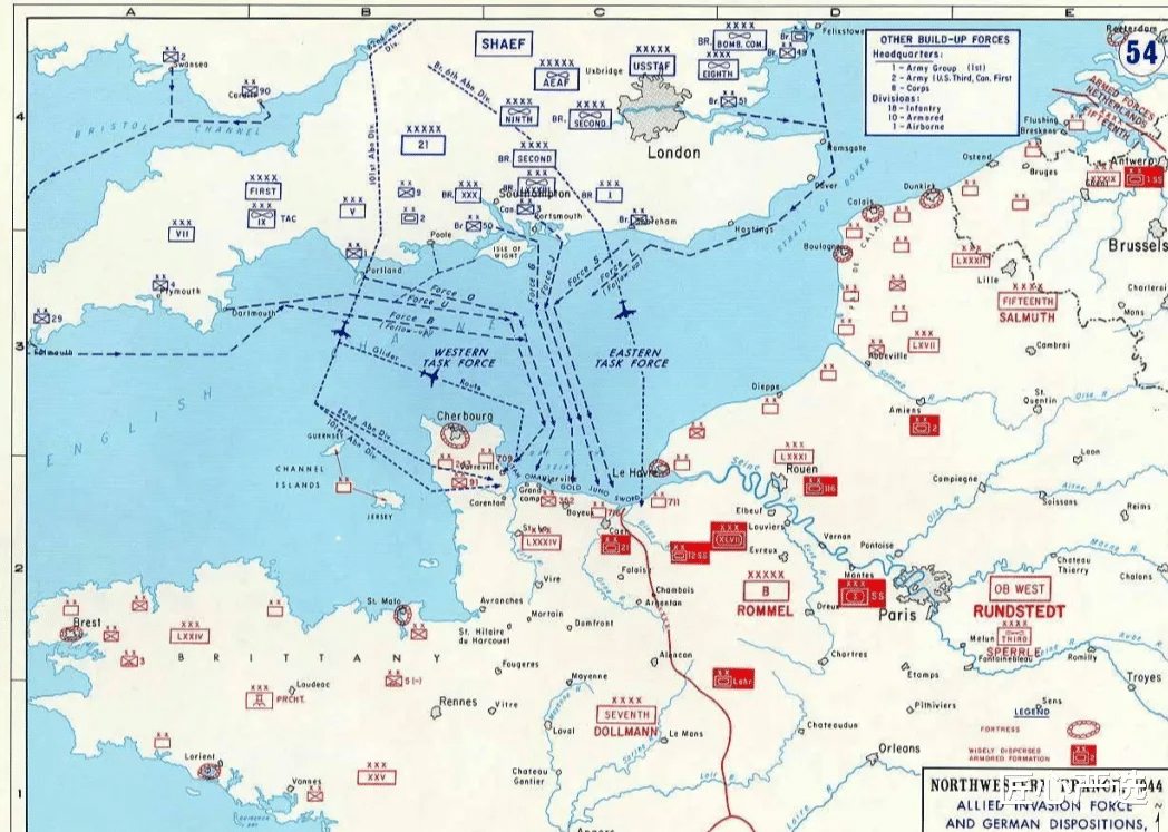 陆军方面,强调保持行动的突然性及上岸后作战的连续性,坚持认为第一波登陆部队需在夜间穿越英吉利海峡,并于日出前登陆,以利用夜色掩护。鉴于该地区6月初天亮时间较早(凌晨3时初现曙光,4时30分已大亮),时间窗口的选择尤为关键。同时,陆军特别指出,需充分考虑潮汐因素,在诺曼底海域,平均潮差显著,低潮时海滩纵深长达数百米,故而主张在接近高潮时登陆,以缩短部队在暴露海滩上的行进时间,并确保“D日”第二次高潮时第二梯队能够顺利跟进。相比之下,海军则倾向于在低潮时实施登陆,以便舰艇能在抗登陆障碍区之外抢占有利位置,同时海军工兵爆破队可在涨潮前清除障碍。而空军则提出了对月光条件的特定要求,即登陆之夜需有良好的月光条件以支持空降行动。面对三方的不同意见,盟军最高统帅部于1944年5月1日召开会议,经过数日的深入研讨与权衡,最终达成了一个折衷决策:将“H时”设定在最低潮后1至3小时,且需满足在日出前12分钟至日出后90分钟的时间框架内,即选择高潮与低潮之间的中间时段进行登陆。