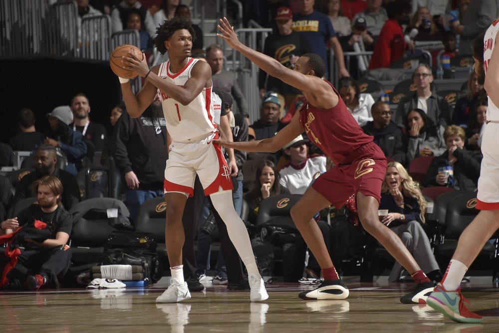 进攻端阿门更多依靠运动天赋用空切、反击、二次进攻得分,连老詹也夸他是“天赋怪”。防守端,阿门能防任何对手,是火箭一号位到四号位换防的关键。