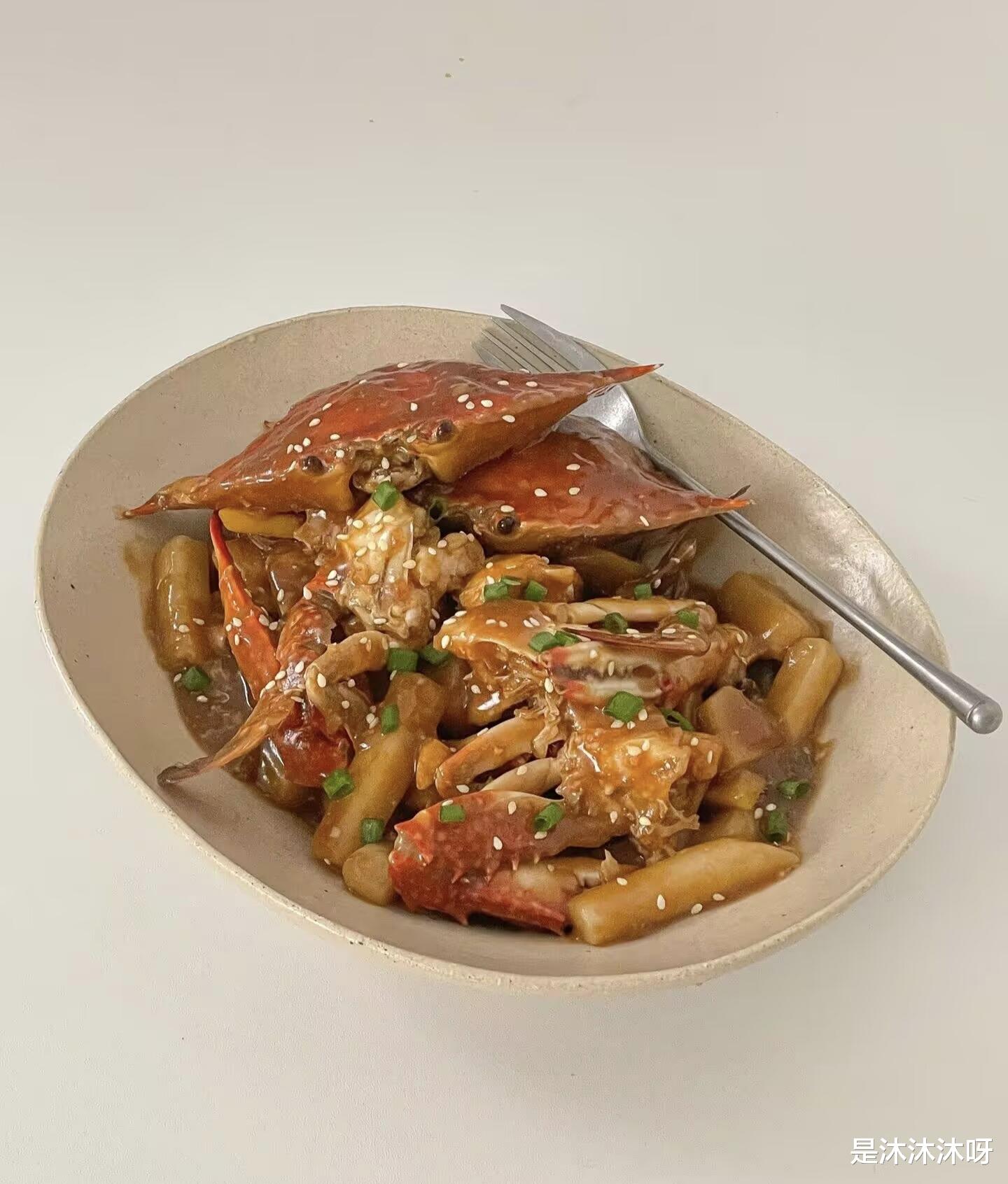 再夹起一块吸饱了汤汁的年糕,软糯Q弹,咬起来“糯叽叽”的,每一口都充满了浓郁的蟹鲜味,咸甜适口,越嚼越香。蟹的鲜、年糕的糯、酱汁的香,三者完美融合,让人根本停不下来筷子。