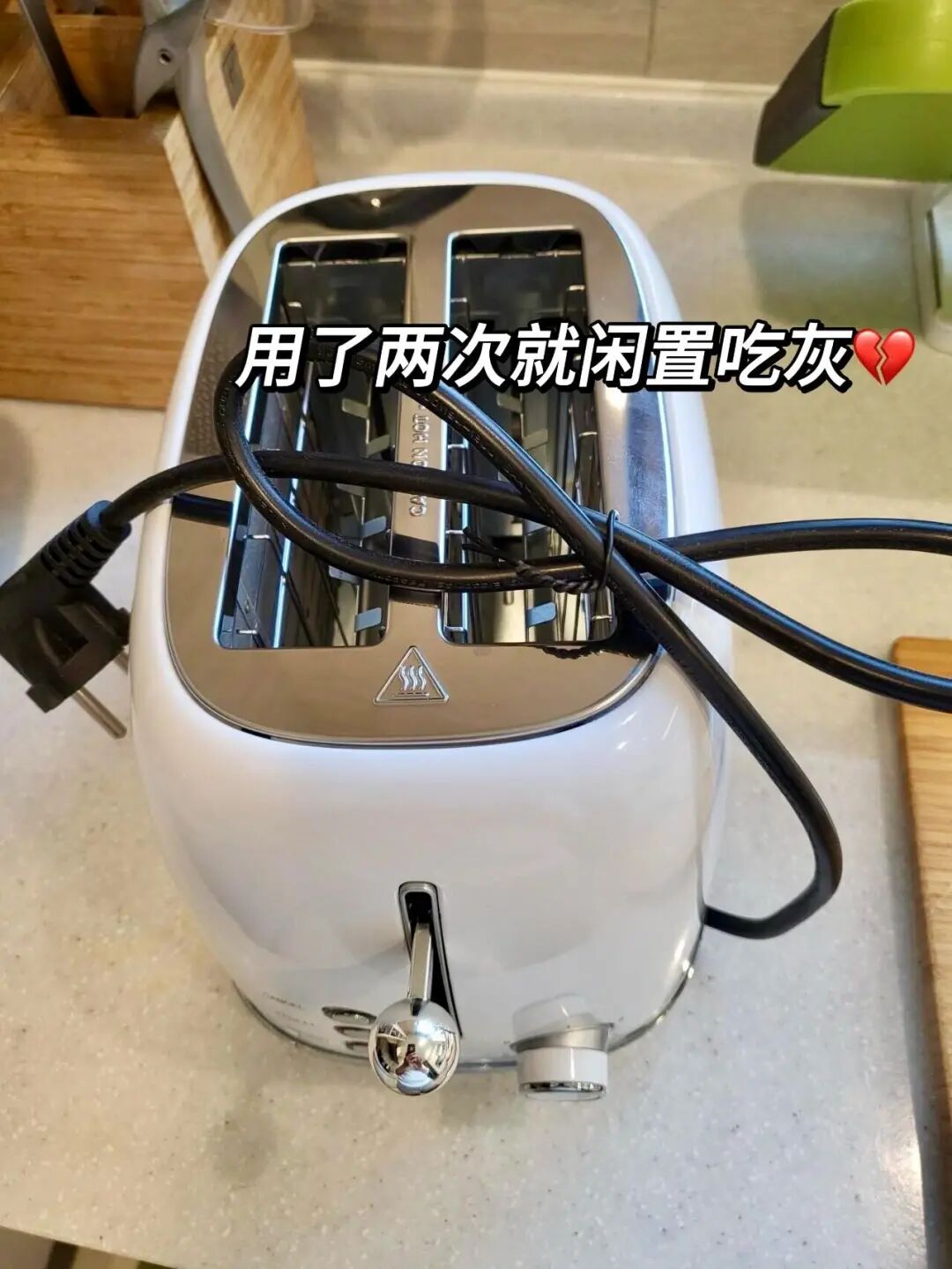 又被面包机的宣传骗到,一键操作,每天早上都能吃到新鲜面包,健康又方便,当时想着,有了它,就能养成吃早餐的好习惯,二话不说就买一台,结果用了两次就彻底放弃了。
