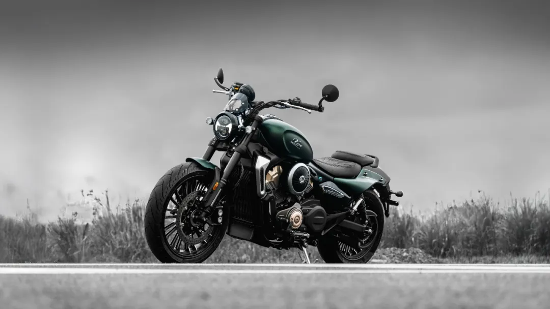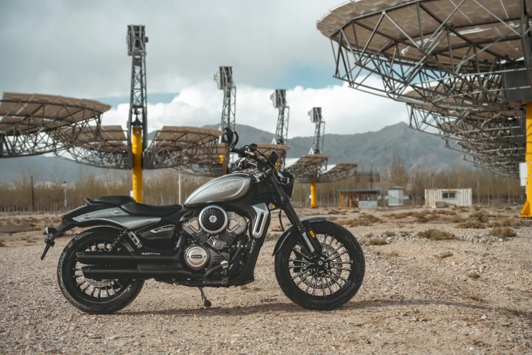 最抢眼的地方是那个V缸发动机:银铜双色缸头外露+黑色涂装护板,视觉冲击力强得离谱,左右都有的圆形空滤壳,辨识度直接拉满,哪怕你觉得它突兀,它也让你忘不了。