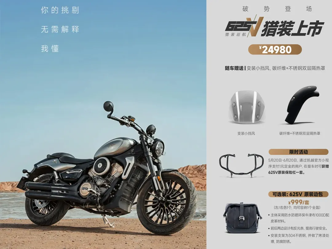 再加上24980元的定价、首发送小风挡+隔热罩、再+1元送护杠这一套组合拳下去,说实话,这车的性价比已经冲到脸上了。