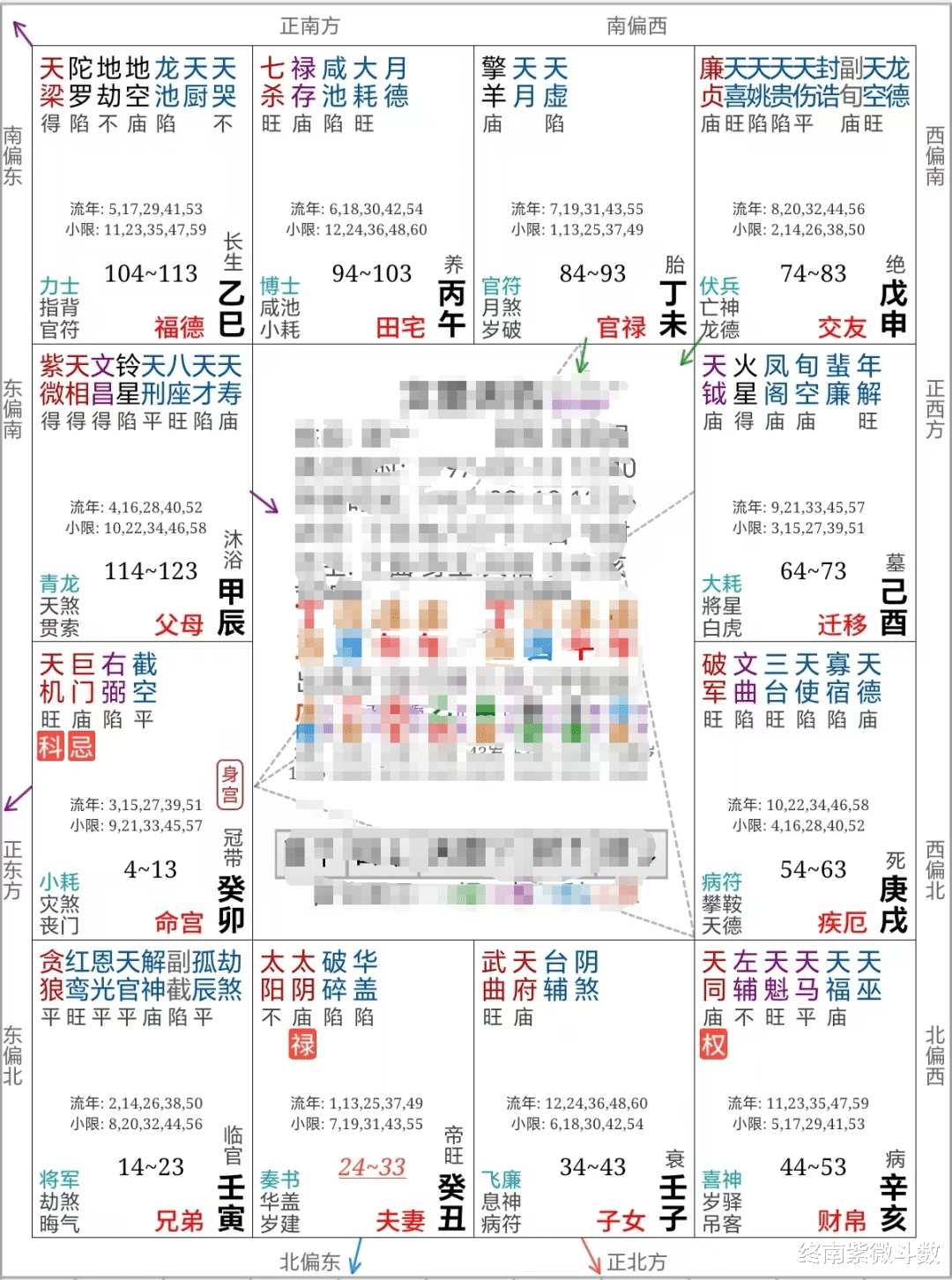 今天我们继续来看案例106这张命盘的姻缘运势。这里告诉大家一个秘密,科忌组合在命宫的人,基本上会吃亏的,其表现往往是软弱,无条件服从,付出多,被看扁等。