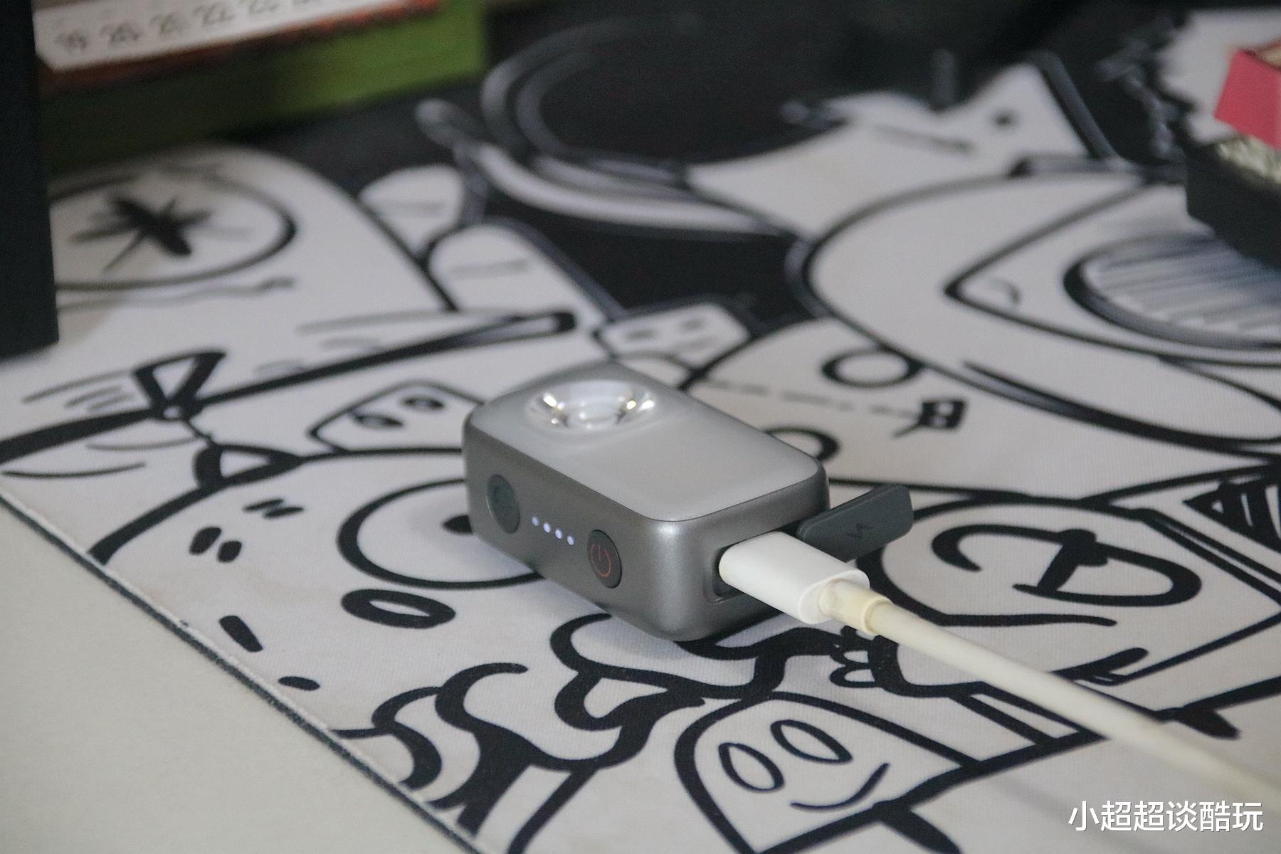 可以看到它采用了小巧精致的设计,握在手里刚刚好,一点也不占地方。它的尺寸是 57×32×23.4mm ,重量只有 86g,就跟一个小玩具差不多,不管是放在口袋里,还是挂在背包上,都很方便,完全不会给户外出行增加负担。