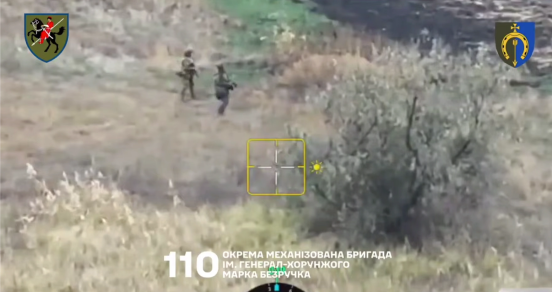 下图是乌克兰无人机拍到的正在冲锋的俄军女兵。