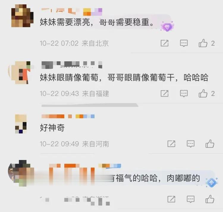 网友也被这反差感逗乐了,“妹妹眼睛像葡萄,哥哥眼睛像葡萄干!”“哥哥看着挺有福气”“宝宝:看来是老爸拖后腿了”