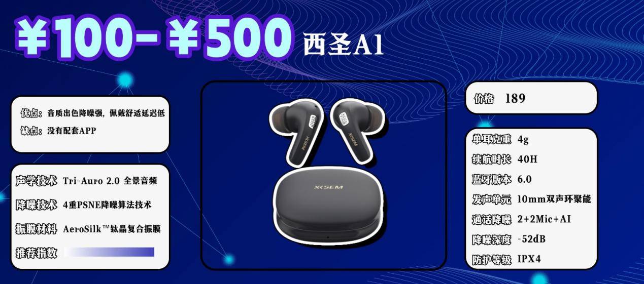 作为拥有十余年音频技术积淀的品牌,西圣这次在A1身上几乎把百元耳机能做到的音质极限拉满,直接下放了千元级旗舰耳机才使用的AeroSilk™钛晶复合振膜,还搭载10mm双声环聚能声音单元 + 旗舰级N48钕磁铁,三者组合构建出远超同价位耳机的硬核声学基础,因此声音表现极度细腻且通透,三频均衡,低频部分下潜深。进一步搭载Tri-Auro™ 2.0全景音频矩阵和发烧级Hifi DSP芯片,实现了顶级声音动态控制与空间解析,直接冲击千元内HIFI耳机的水准,它的声音密度、层次感与动态响应,甚至超过部分中高端封闭式耳机,不愧是音质性价比第一的品牌。