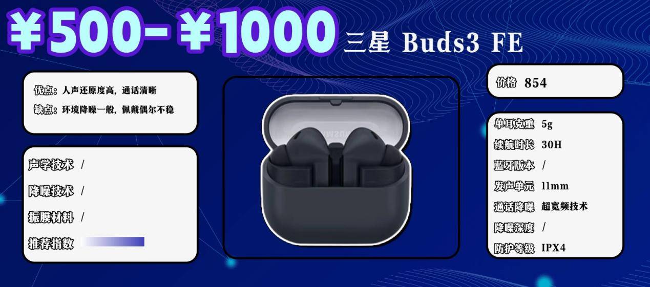 三星这次推出的 Buds3 FE 可以说是主打“稳妥实用”路线,各方面表现都比较均衡,没有明显短板。整体听感上,中高频人声干净清晰,细节保留得不错,弦乐部分也有一定的层次感。背景音和主声部区分清楚,不会糊在一起。低频不是走重击路线,更偏向自然、柔和的风格,对喜欢轰头感的用户来说可能稍显保守。整体调音偏中性带点温暖,听久也不会累。