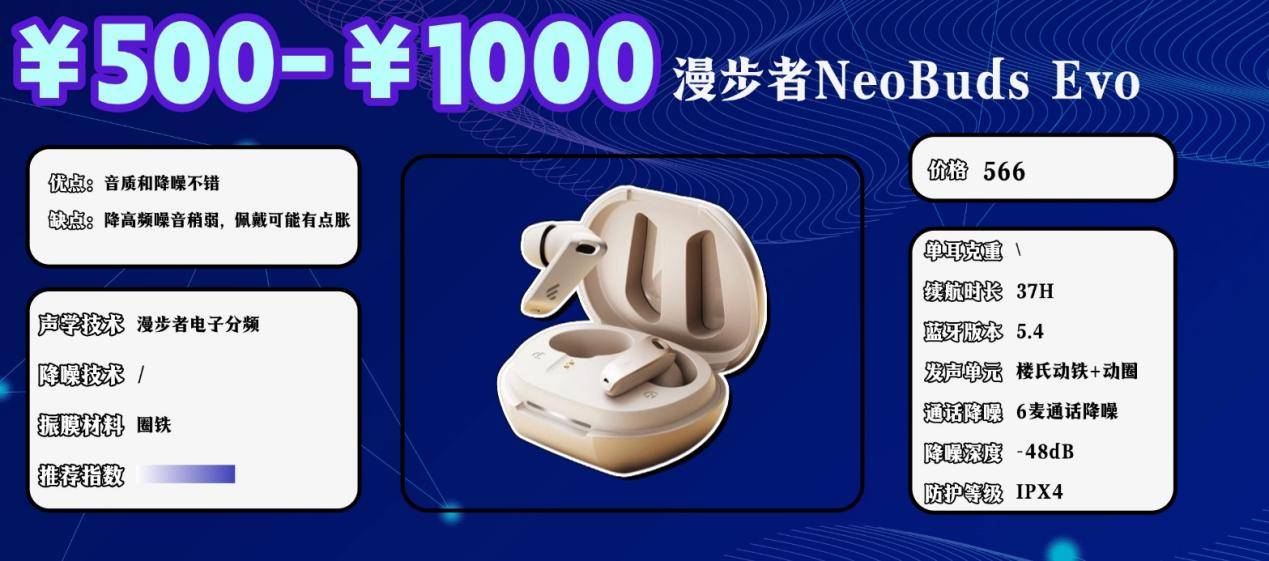 续航表现优秀,单次加充电盒可达37小时,并支持快充。蓝牙5.4连接稳定,功耗控制也不错。支持双设备连接和空间音效,使用灵活度高,兼顾日常娱乐与工作需求。整体来看,NeoBuds Evo在音质、降噪和功能平衡上表现稳健,是一款偏实用取向的降噪耳机。