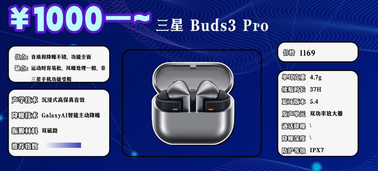 三星这次的 Buds3 Pro 在整体听感上保持了较高水准。它采用了 10.5mm 动圈低频单元和 6.1mm 平面振膜高频单元的组合,声音层次清晰。低频部分量感适中,下潜够深,有一定弹性,听鼓点或电子乐时冲击感到位,但不会轰头。人声部分自然、靠前,细节保留得不错。高频整体稳定,不刺耳,不过在极高音区域稍显收敛,对喜欢明亮音色的用户来说可能不够惊艳。整体调音偏向平衡路线,耐听但不夸张。