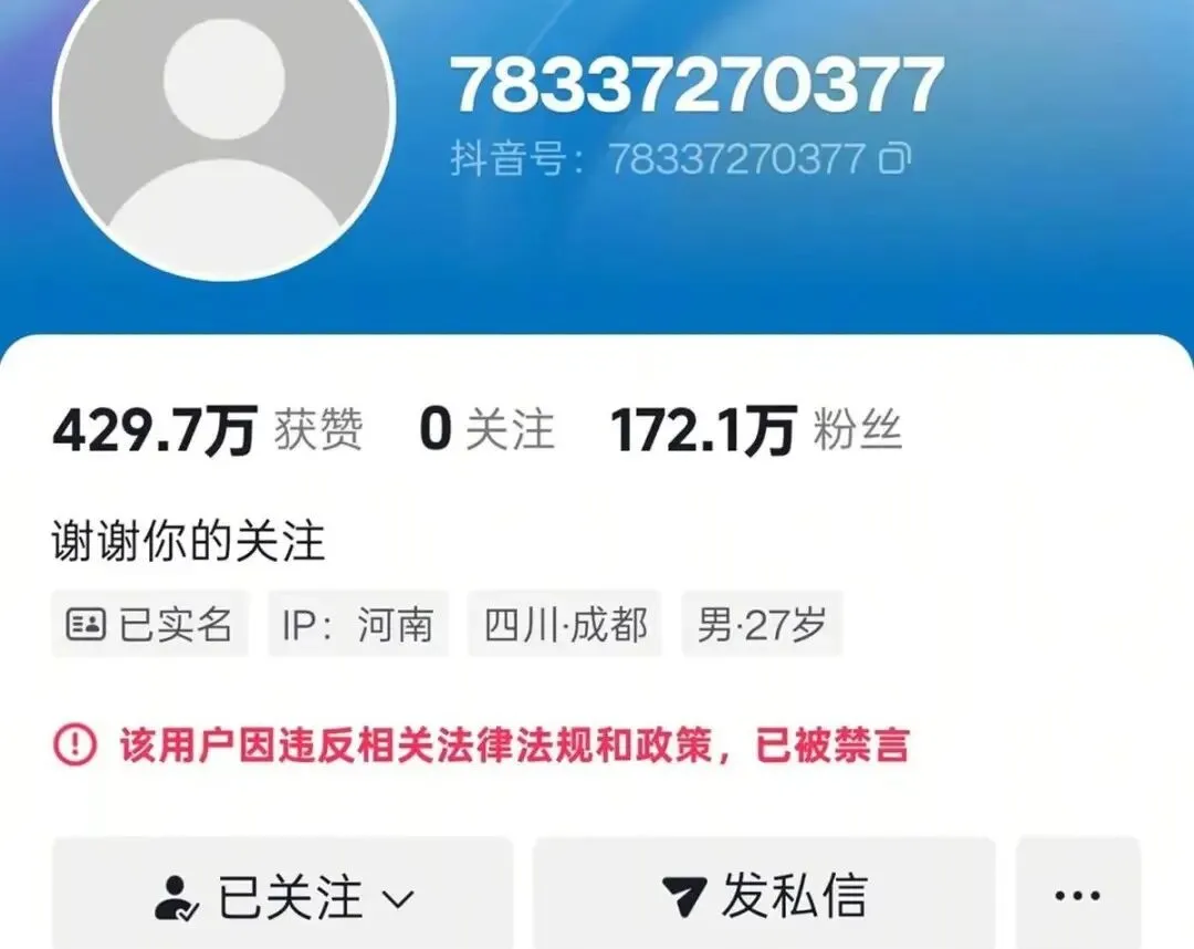 网友搜索发现,户晨风全网账号被彻底封禁,且无法通过搜索找到账号,账号主页已无法查看信息。