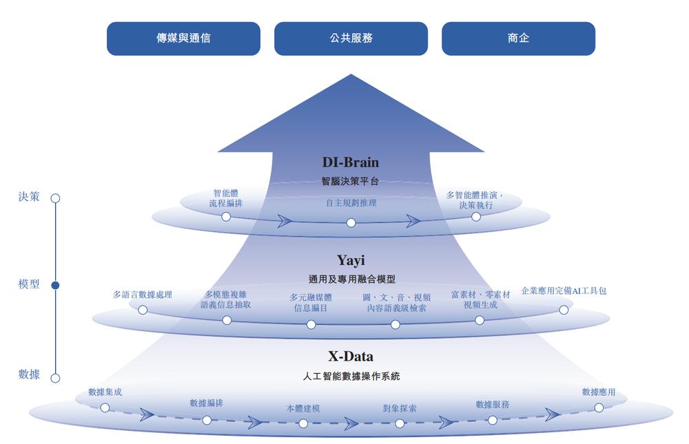 其中,X-Data负责把分散、异构的原始数据整理成可供AI使用的数据集;雅意大模型承担语义理解、逻辑推理、多模态处理等能力;DI-Brain则更偏向智能体开发与编排,负责把模型、工具调用和决策流程真正串起来。