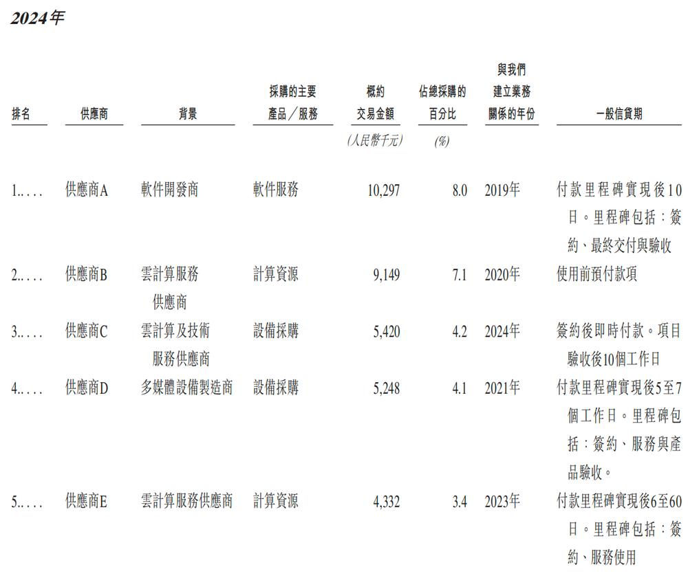 在供应链侧,中科闻歌的业务依赖计算资源与基础设施能力。其主要采购包括云计算服务、硬件设备及商业软件三大类。
