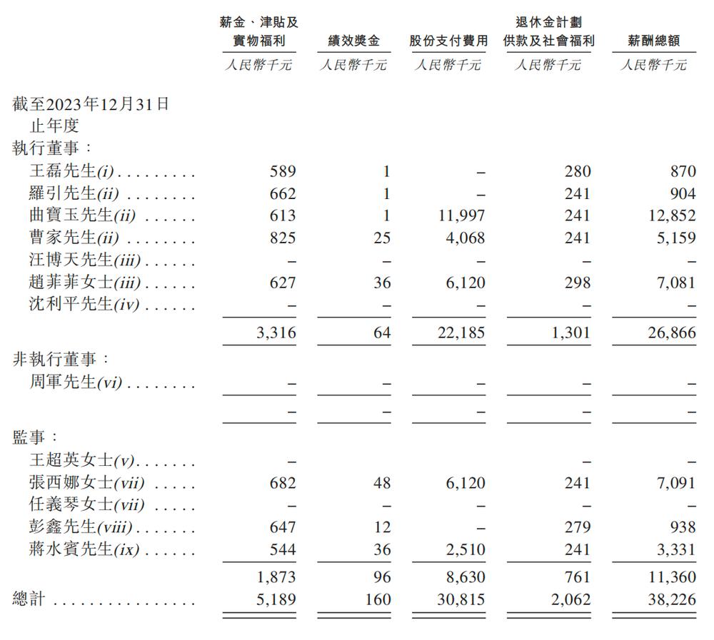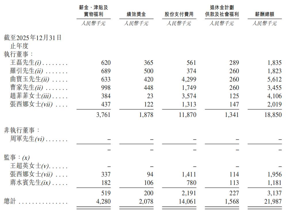 其中,2025年董事长王磊与CEO罗引薪酬分别为约183万元和182万元。