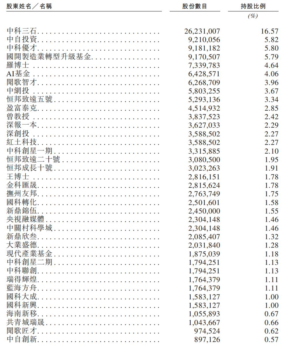 除中科院体系资金外,股东名单中还出现了中网投、深创投、红杉中国等机构投资者,以及中关村科学城、央视融媒体等产业与政府背景资金。