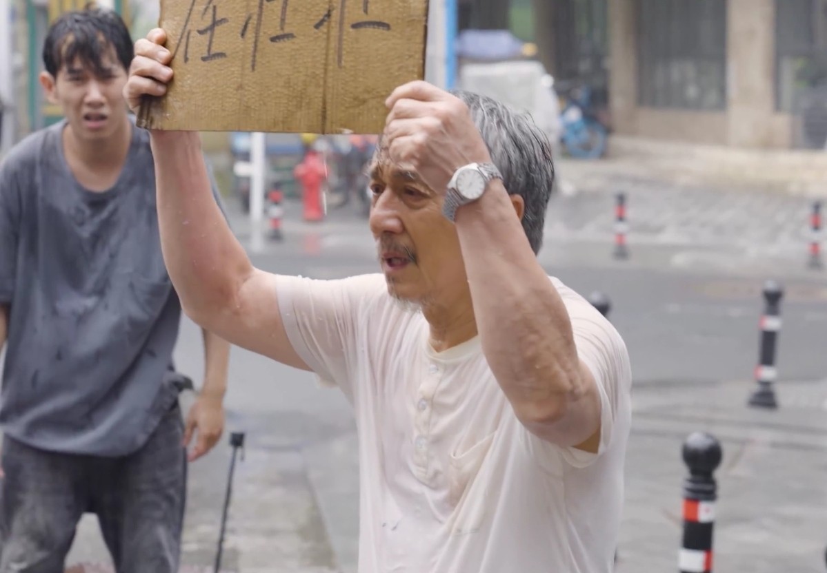 影片中的成龙面容沧桑,头发花白,与他在上一部电影《捕风追影》中的状态截然不同。