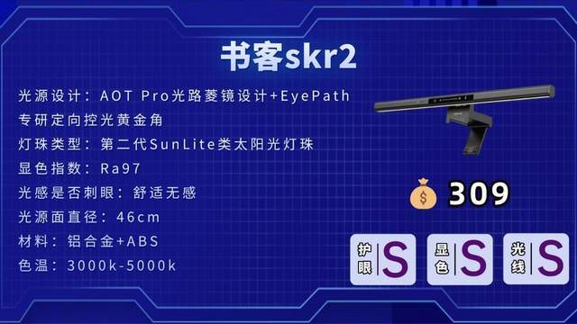 书客(Suke)SKR2:采用AOT Pro级光路结构和SunLite类太阳光灯珠,蓝光危害降低约64%,眩光减少86%。综合好评率达98%,被视作明基的高性能平替,无广告但口碑极佳。