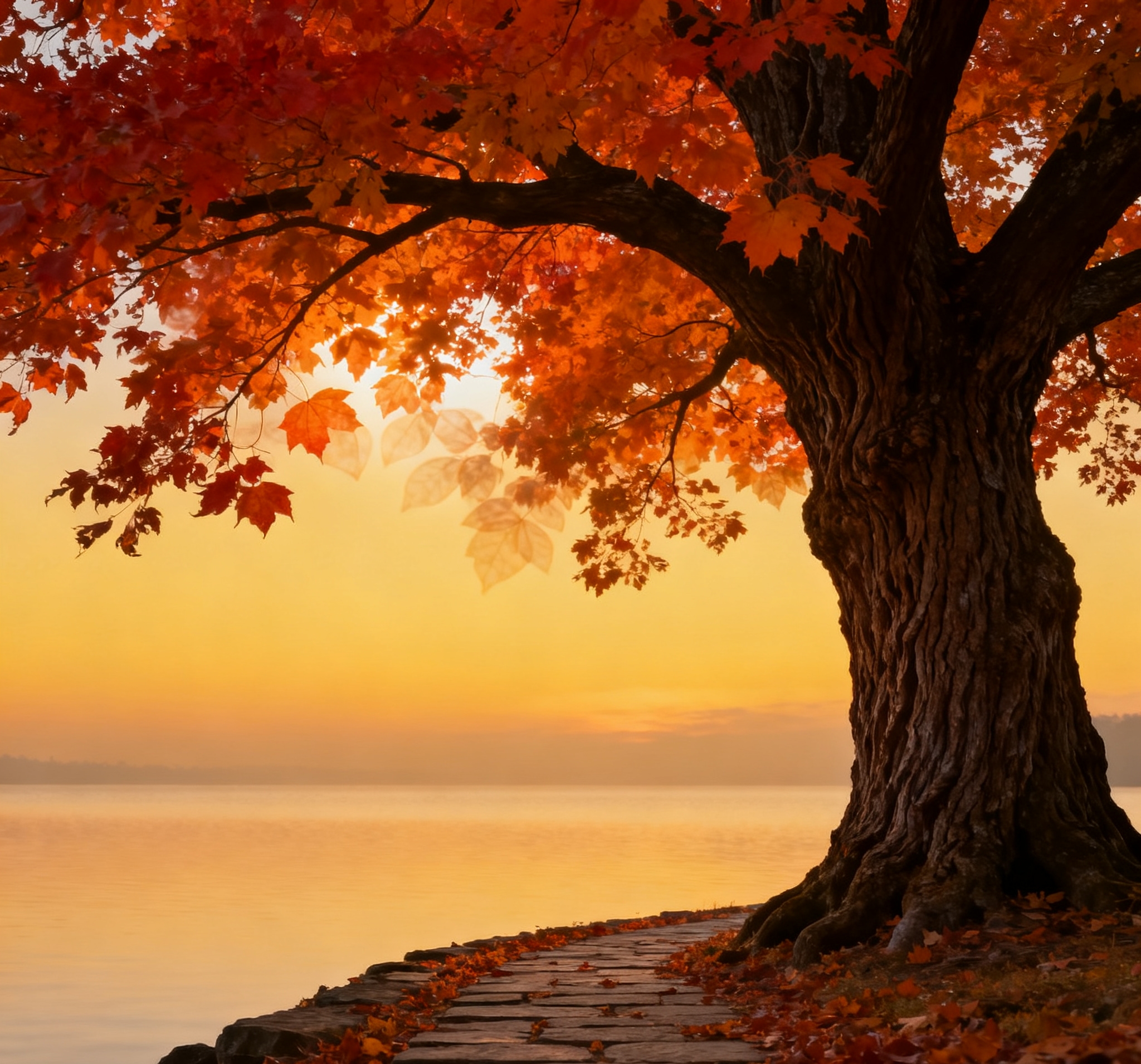 夕阳疏影落孤亭,落叶无声风自轻。
