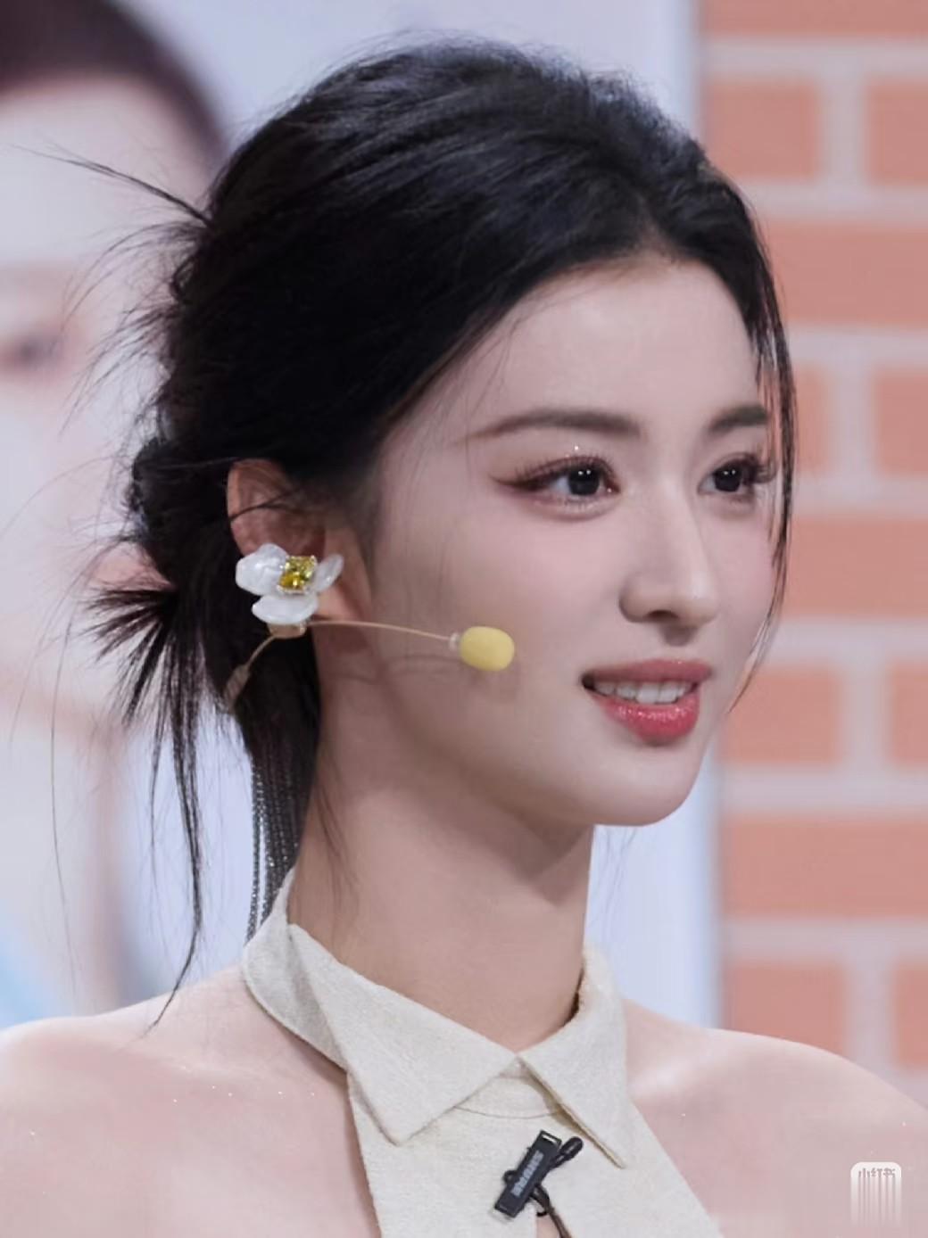 镜头里的王楚然穿一身水蓝色古装,头发梳得整整齐齐,头上还别着银蓝的小花饰,耳朵上的坠子轻轻晃,往那一站古典味儿拉满,对着镜头笑起来眉眼弯弯,特别明媚。