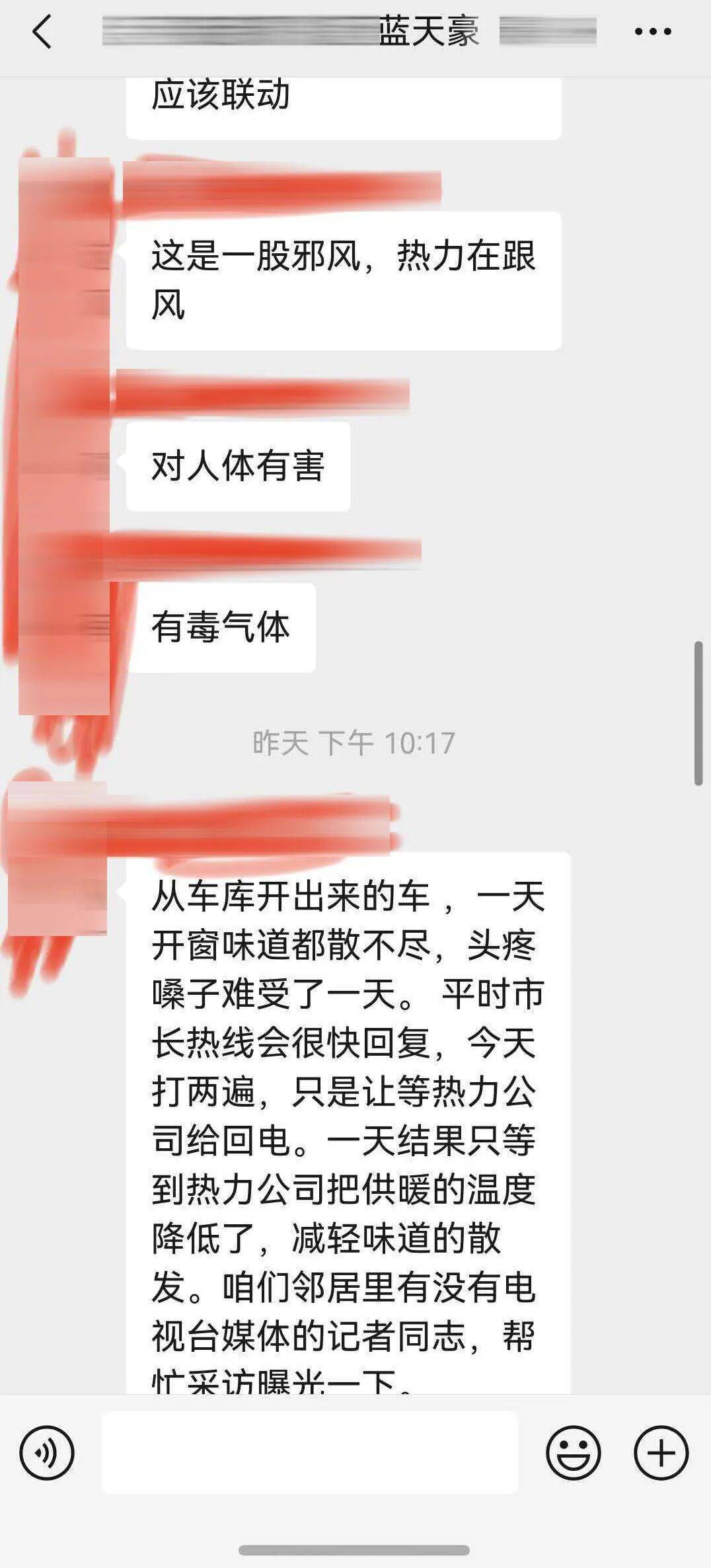 近日,济宁市任城区蓝天豪庭小区多位业主反映,济宁运河热力有限公司在小区热力管道井内投放臭味剂,未提前告知,导致刺鼻异味充斥整个小区,楼道、电梯、居民家中均受影响,多名业主出现头痛、恶心、咽喉不适等身体不适反应,尤其车库气味“巨大”。