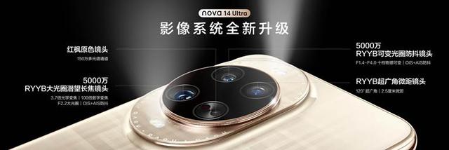 nova 14 Ultra搭载华为独有的三RYYB镜头:5000万像素RYYB可变光圈防抖镜头,拥有从F1.4到F4.0十档物理可变光圈;5000万像素RYYB大光圈潜望长焦镜头,支持3.7倍光学变焦,100倍数字变焦;1300万像素RYYB超广角微距镜头,支持120°超广角,2.5cm超级微距。强大的硬件与达芬奇人像引擎3.0“软硬兼施”,即使在 Live House 等复杂光线环境下,亦能拍出光影通透、细节丰富的质感人像。