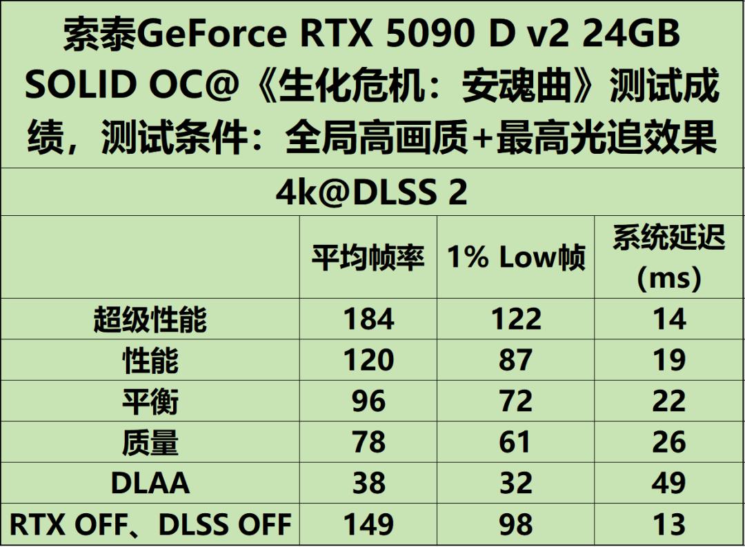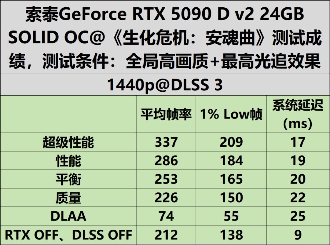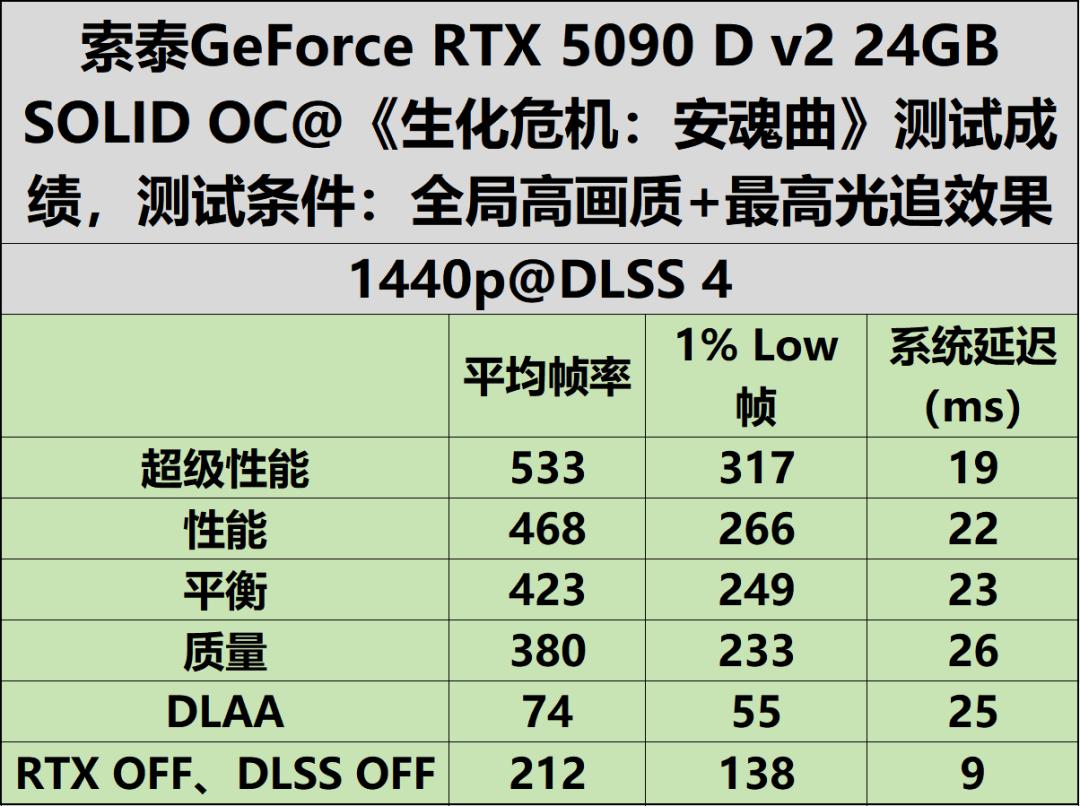 索泰GeForce RTX 5090 D v2 24GB SOLID OC《生化危机:安魂曲》测试成绩解析