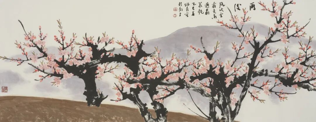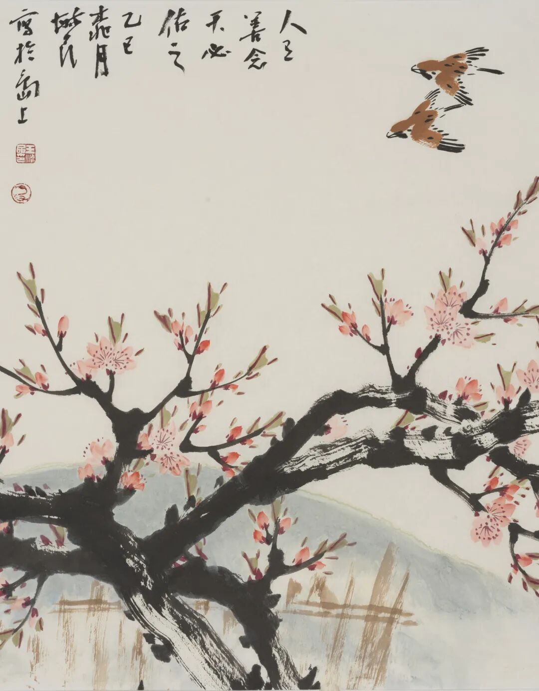 他先后就读于河北平泉师范学校、后入天津美术学院,更是有幸成为著名书画家孙其峰,霍春阳二位先生的入门弟子,得到了他们的悉心指导和教诲。已经打下了坚实的艺术基础。在艺术创作上,他追求自然与人文的和谐统一,注重笔墨的运用和画面的协调感。如果把“画面清新,章法别致”这句话用到他的作品上一点都不为过。他的作品题材广泛,主攻花鸟还旁及山水,在研究笔墨及章法的同时又突出造境,犹在桃花的题材上更是成就斐然。贾广健先生曾在其长卷题有“独占春光”四个字,这是对他作品的最好诠释。燕山大学出版社给他出过一本《中国画桃花选集》,在他的作品中不管是长跋还是短句,是形式还是内容,包括书法题款,都能看出他的文学造诣和手头的功夫。早年的国画小辑《一枝一叶总关情》《王毓民中国画选》《王毓民书画集》《中和楼·砚边散记》《砚边遣兴》等作品集,展现了其精湛的笔墨技艺和文化底蕴,彰显了他在传统中追寻时代特色的艺术风格。