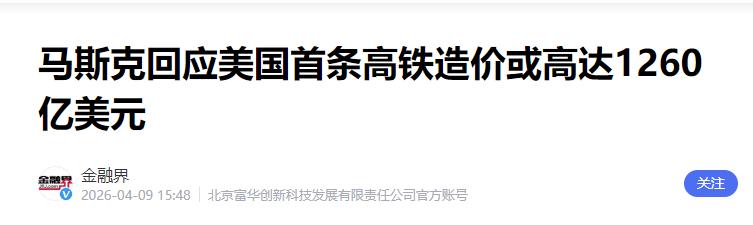 马斯克回应美国首条高铁造价或高达1260亿美元——金融界