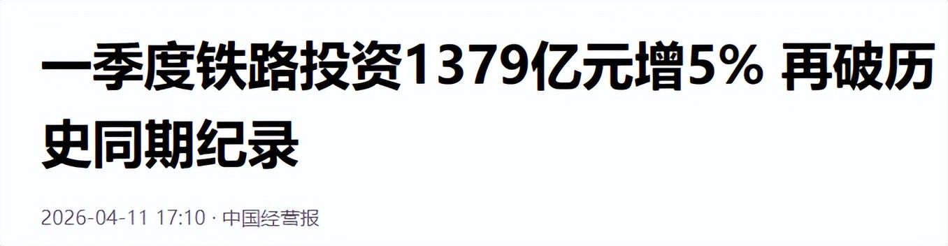 咱们再看看中国的公共交通系统,到底有多强?2026年一季度,全国铁路完成固定资产投资1379亿元,同比增长5.1%,继续保持强劲势头。