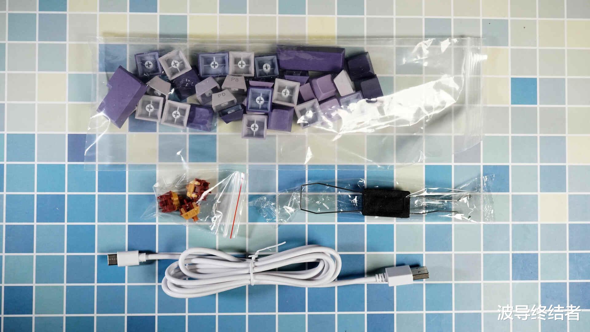 配件方面,更是除了3个替换轴体,1个拔键拔轴器,1条充电数据线外,还给了一大包的替换键帽,甚至连回车方案都能切换成欧式布局,用料还是相当猛的。