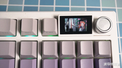 说到屏幕,就是这把键盘另一个很好玩的地方了。目前只有使用线材连接PC,才会显示TFT屏幕传输图片的模块,应该是为了保证传输稳定。我们可以将GIF图片导入键盘,所谓的键盘看片哈哈。目测分辨率是240x135,素材最好是预先处理好大小,这样显示效果会更佳。