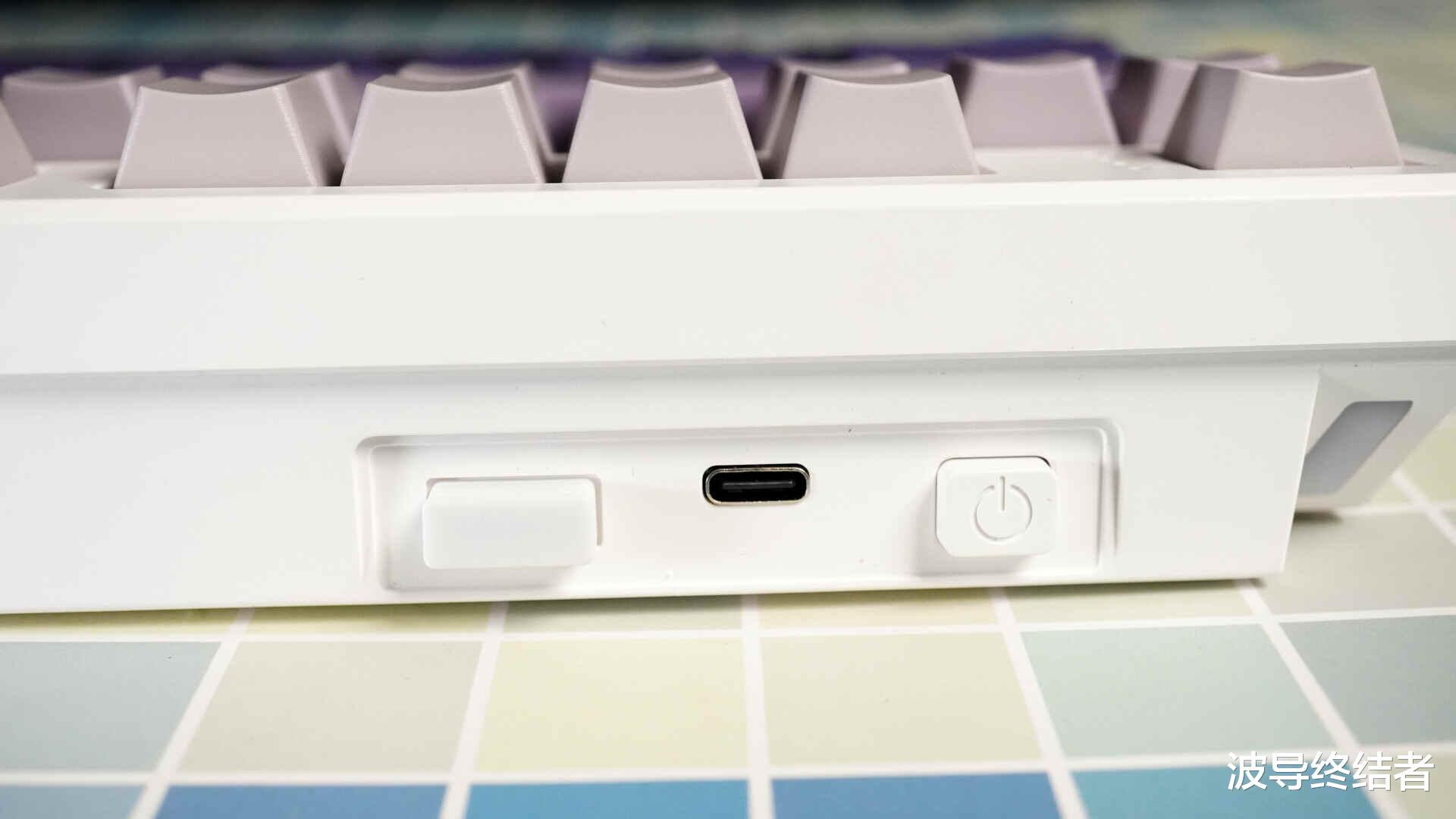 值得一提的是,这把键盘的三模切换,是使用Fn组合键进行软切换,背部的这个按钮只是个总开关。由于我家里的电脑桌只有1个键盘位,而我平时需要在2台电脑之间频繁切换使用,这次换上软切换的键盘,就会比物理拨动开关更方便。