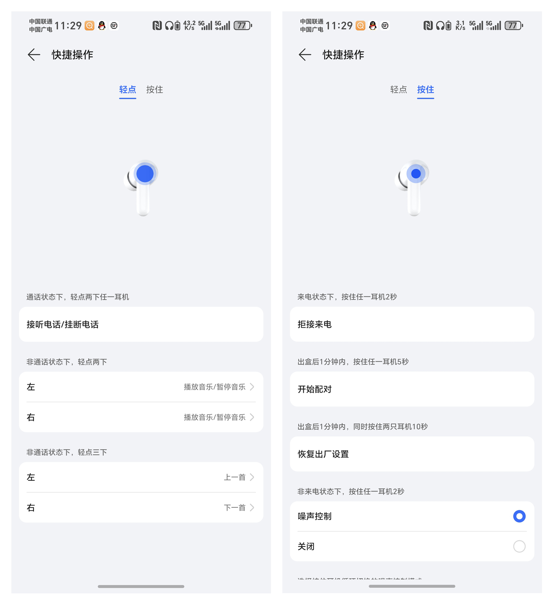操作自定义功能让交互更随心,通过 APP 可自定义耳机触控手势,如双击切歌、三击唤醒语音助手等,用户能根据使用习惯设置操作逻辑。单耳 5.3g 的轻量化设计,配合精准触控反馈,操作时无需用力按压,佩戴舒适感与操控便捷性完美兼顾。